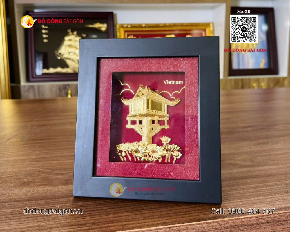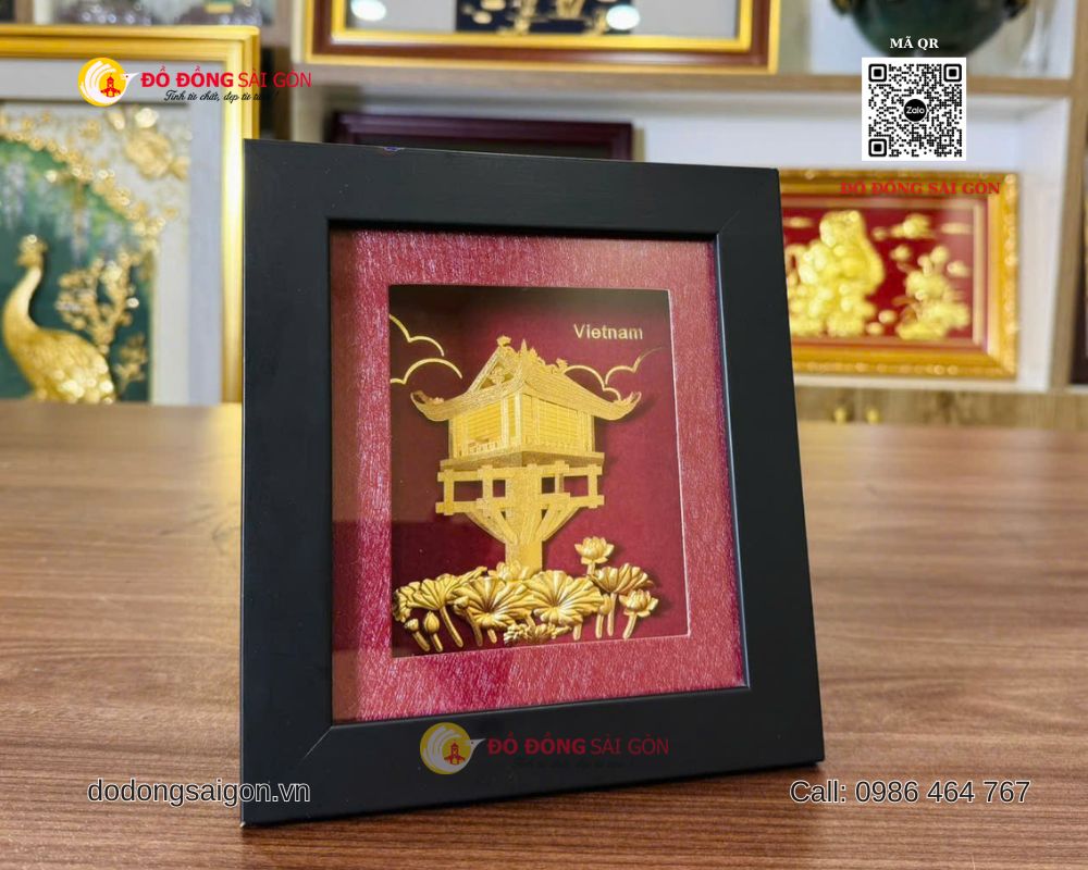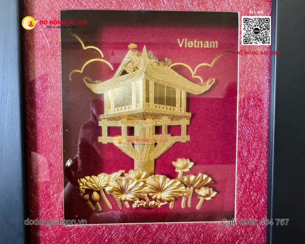 Tranh Chùa Một Cột vàng 24K kích thước 15 x 20cm dễ dàng trưng bày ở nhiều vị trí như: