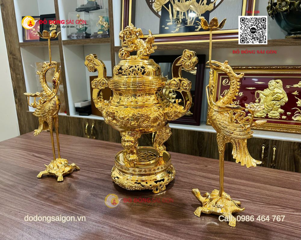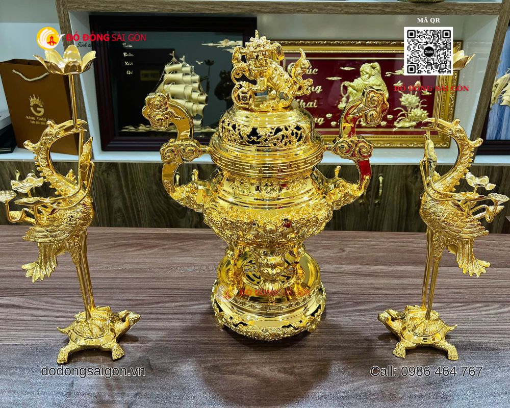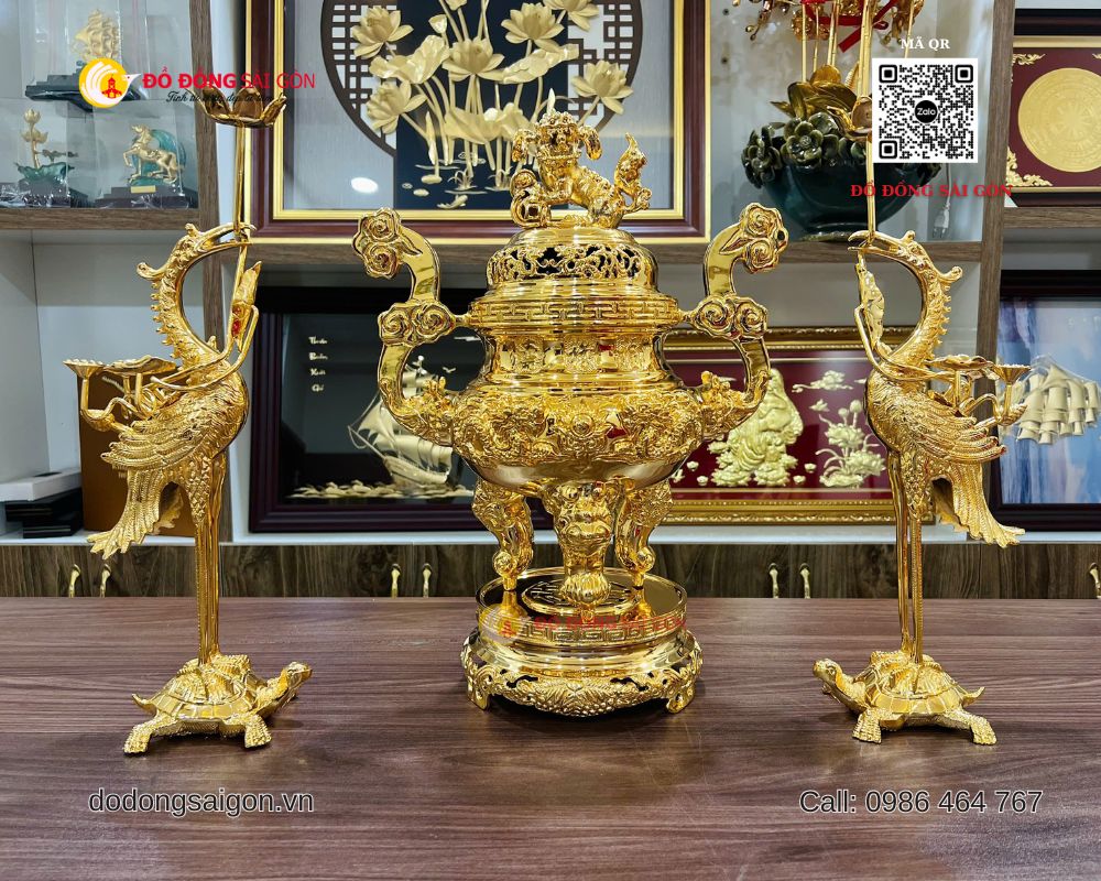 Bộ đỉnh hạc bằng đồng mạ vàng 24k không chỉ là vật phẩm thờ cúng cao cấp mà còn là biểu tượng của phúc – lộc – thọ – sự trường tồn trong đời sống tâm linh người Việt. Lựa chọn sản phẩm chất lượng từ Đồ Đồng Sài Gòn – Vua Quà Tặng Vàng chính là cách thể hiện lòng thành kính, sự chu đáo và đẳng cấp trong không gian thờ tự.