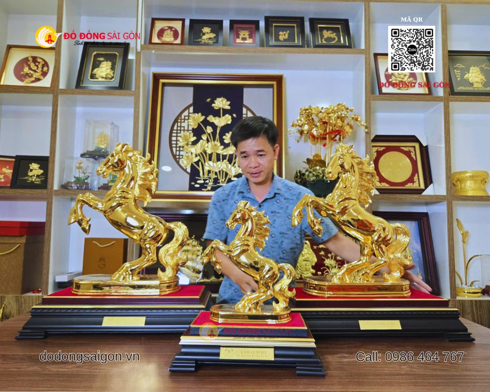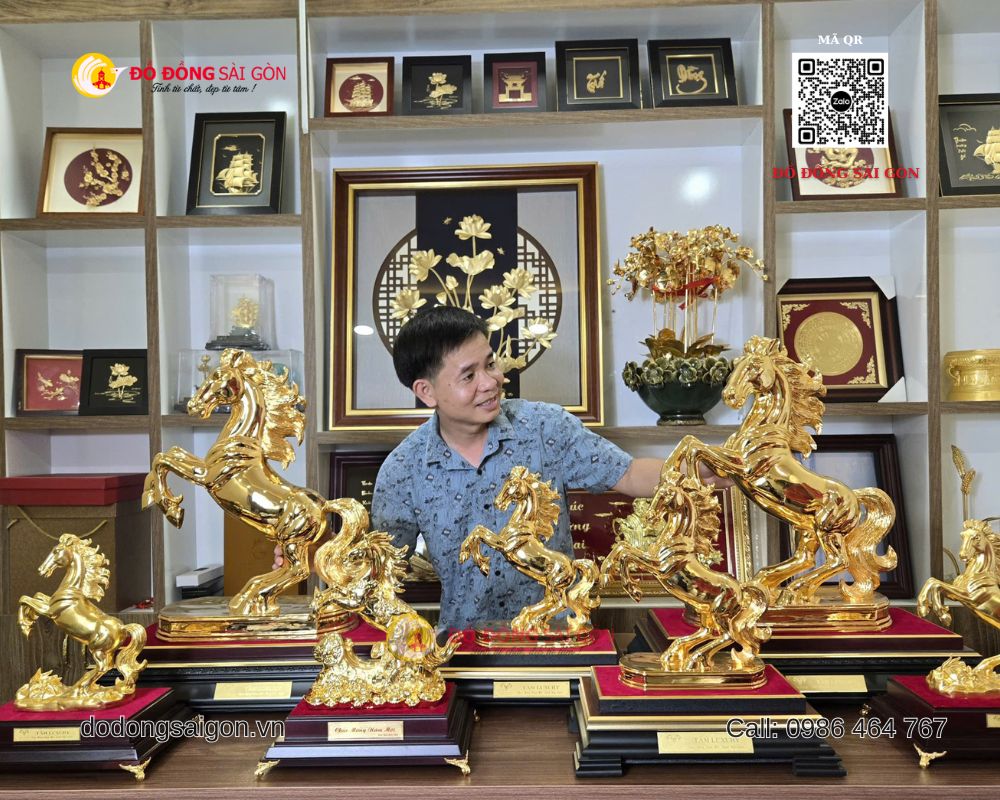 Năm 2026 – Bính Ngọ là năm của ngựa – thời điểm lý tưởng để chọn cho mình hoặc người thân những mẫu tượng ngựa đẹp nhất mang phong thủy tốt và giá trị thẩm mỹ cao. Tại Đồ Đồng Sài Gòn – Vua Quà Tặng Vàng, bạn sẽ tìm thấy bộ sưu tập tượng ngựa vàng 24k đa dạng – từ để bàn nhỏ gọn đến kích thước lớn – đáp ứng mọi nhu cầu quà tặng và trưng bày.