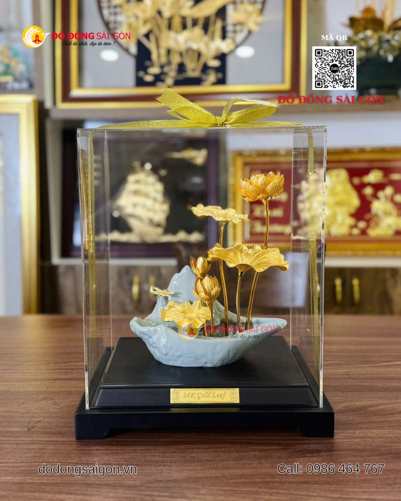 Trong những năm gần đây, các sản phẩm quà tặng dát vàng – đặc biệt là hoa sen vàng 24k cao 35cm – đang trở thành xu hướng quà tặng cao cấp được ưa chuộng tại Sài Gòn. Không chỉ sở hữu vẻ đẹp thanh khiết và sang trọng, hoa sen vàng còn mang giá trị phong thủy tốt lành, phù hợp làm quà tặng đối tác, khách hàng, sếp, người thân hoặc dùng để trưng bày trong không gian sống và làm việc.