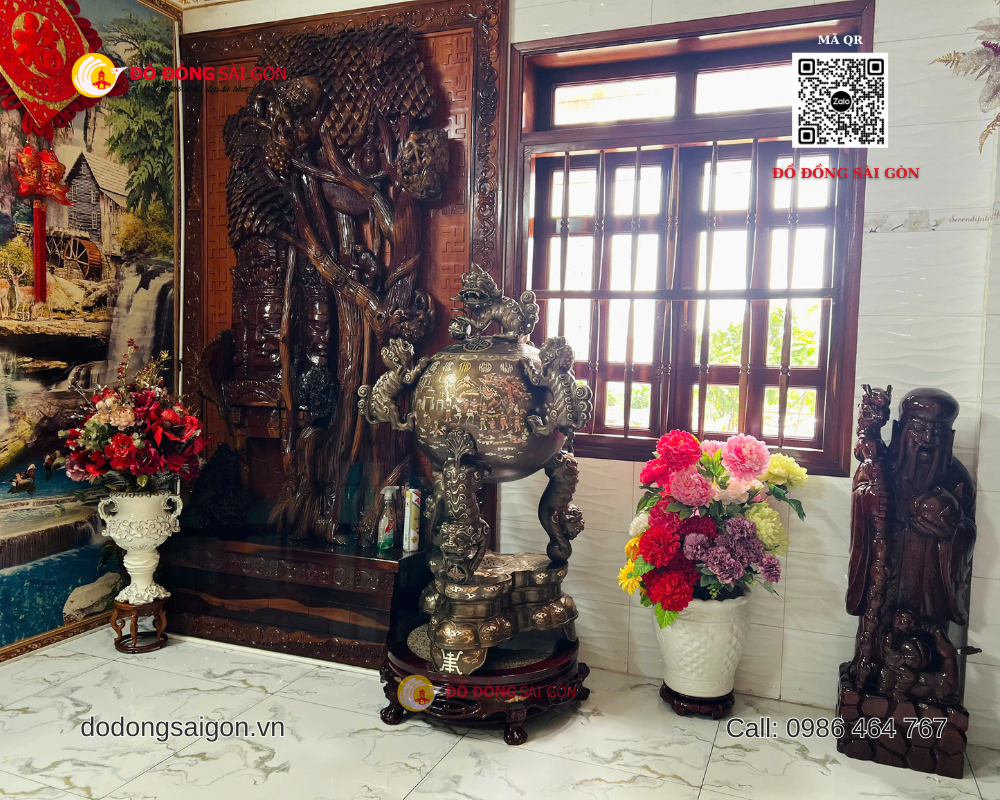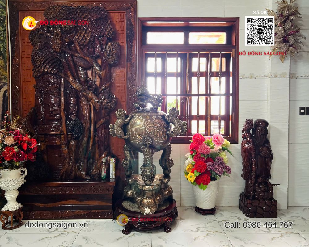 Trong không gian thờ cúng, một bộ đỉnh đồng cao cấp không chỉ mang ý nghĩa trang nghiêm mà còn thể hiện đẳng cấp, vị thế của gia chủ. Trong số các dòng đỉnh đồng nổi bật hiện nay, Đỉnh cầu thất lân cao 1,5m khảm vàng bạc là mẫu sản phẩm quyền quý, sang trọng, được yêu thích bởi vẻ đẹp bề thế và đường nét chạm khảm vô cùng tinh xảo. Đây là tuyệt tác thường được các gia đình có điều kiện, các doanh nghiệp, đình chùa hoặc nhà thờ họ lựa chọn để tôn nghiêm không gian thờ tự.