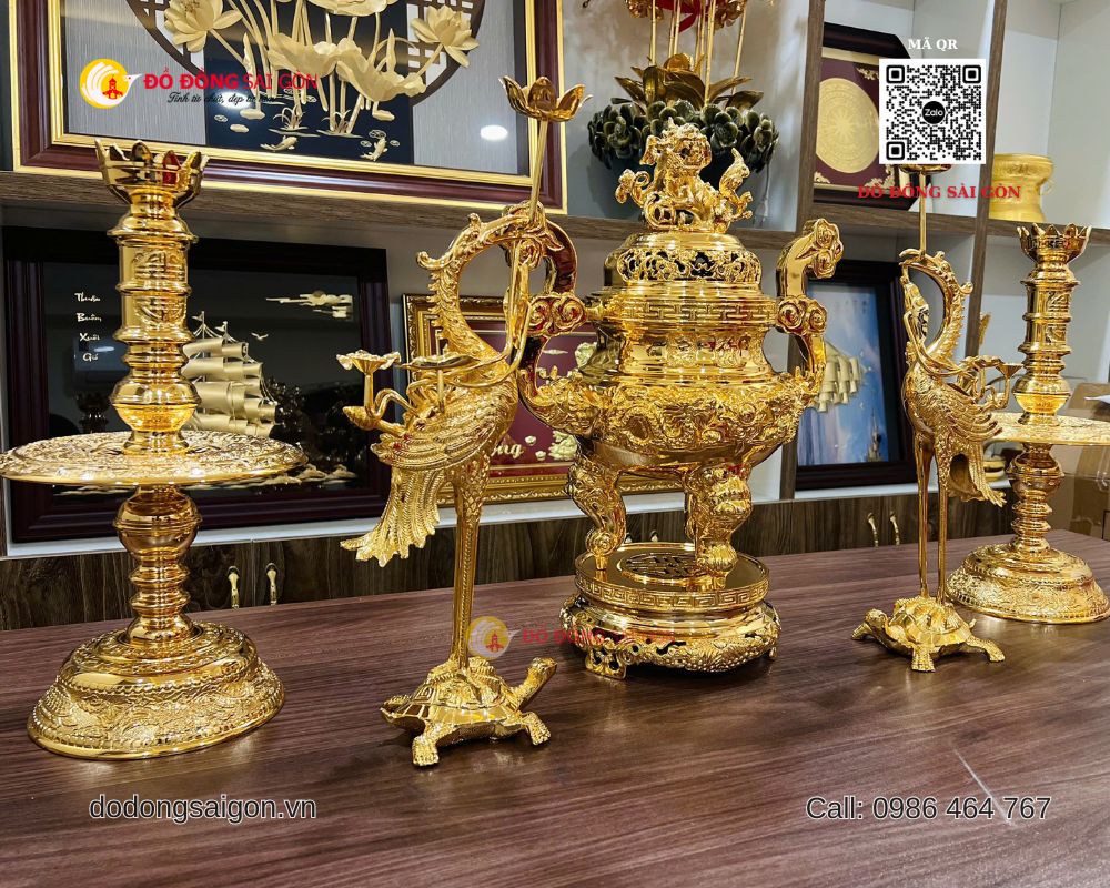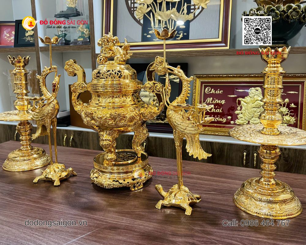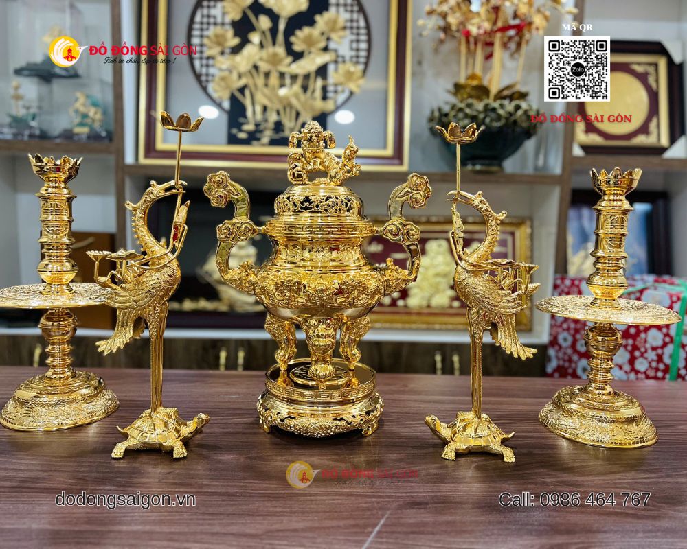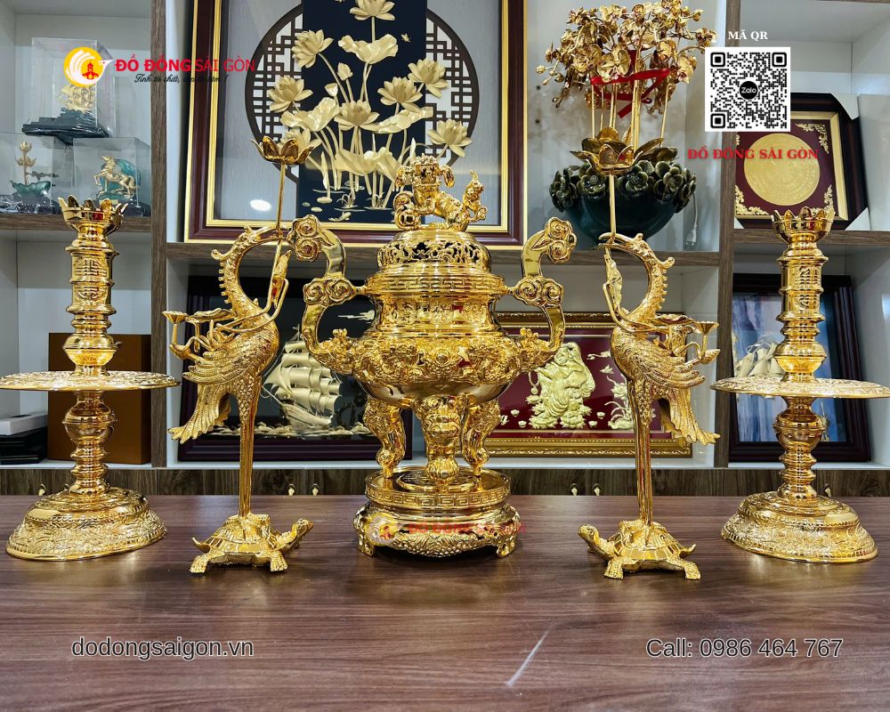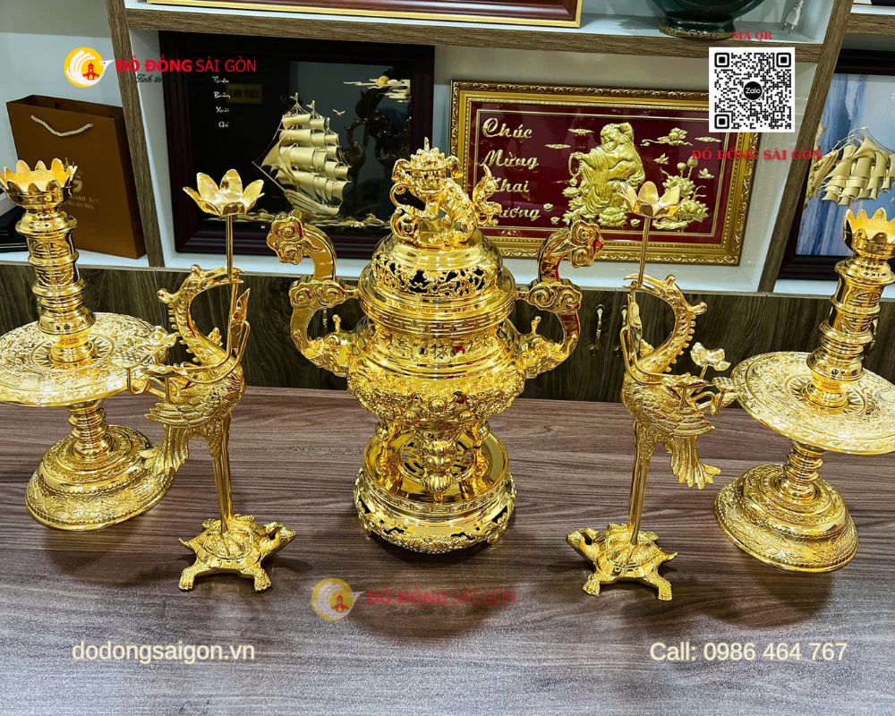 Trong văn hóa thờ cúng truyền thống của người Việt, bộ lư đồng ngũ sự là vật phẩm không thể thiếu trên bàn thờ gia tiên, bàn thờ Phật và các không gian thờ tự trang nghiêm. Không chỉ mang ý nghĩa tâm linh sâu sắc, bộ lư đồng ngũ sự mạ vàng 24K còn thể hiện sự chu toàn, lòng thành kính và mong cầu phúc lộc bền lâu cho gia đạo. Tại Sài Gòn, các mẫu lư đồng ngũ sự cao 45cm, trọng lượng 20kg đang được nhiều gia đình, doanh nghiệp và cơ sở thờ tự lựa chọn.