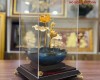 Thông thường, chậu hoa sen vàng sẽ được đặt trong hộp mica hoặc hộp kính cao cấp:
