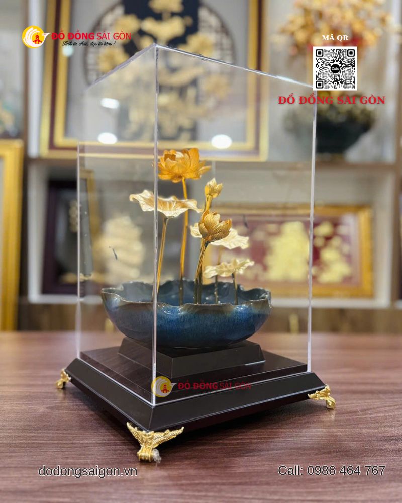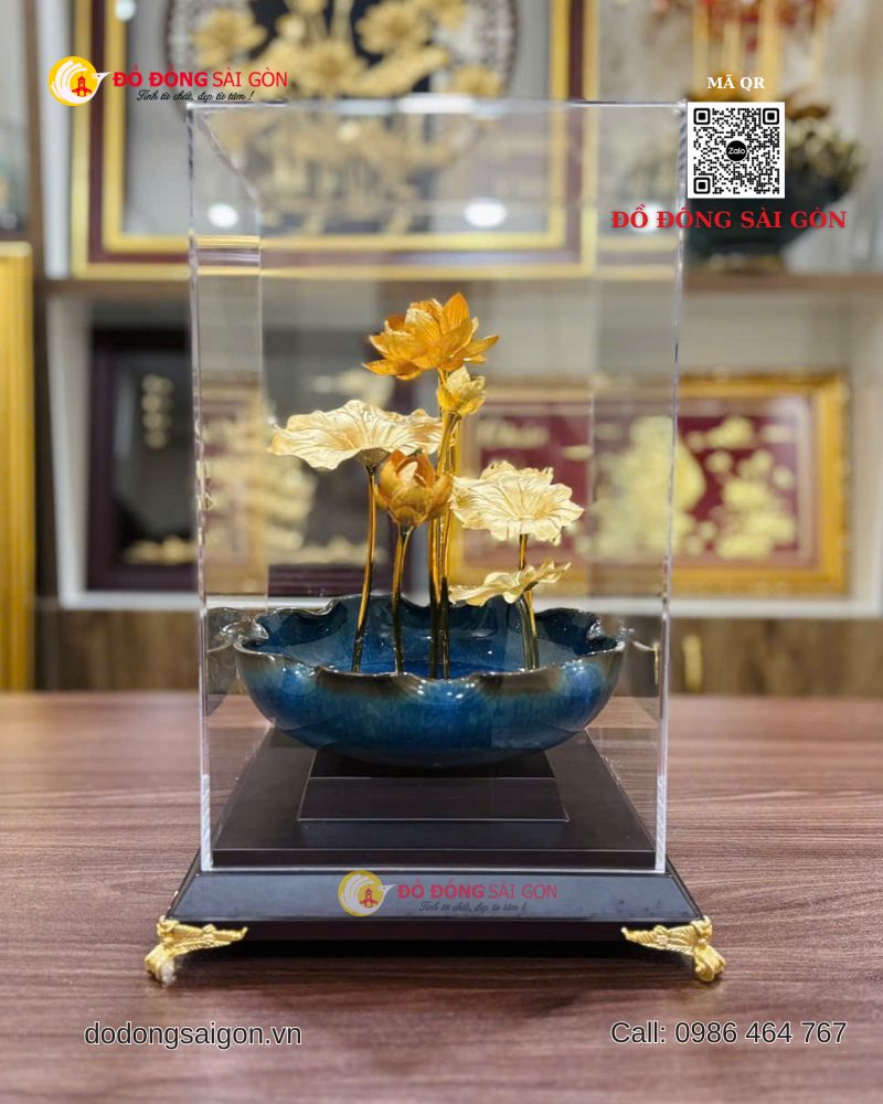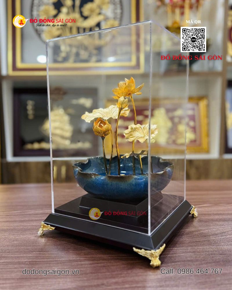Chậu hoa sen bằng vàng 24k đặt trong phòng khách, văn phòng hay bàn làm việc giúp không gian trở nên hài hòa, sáng sủa và đầy năng lượng tích cực.