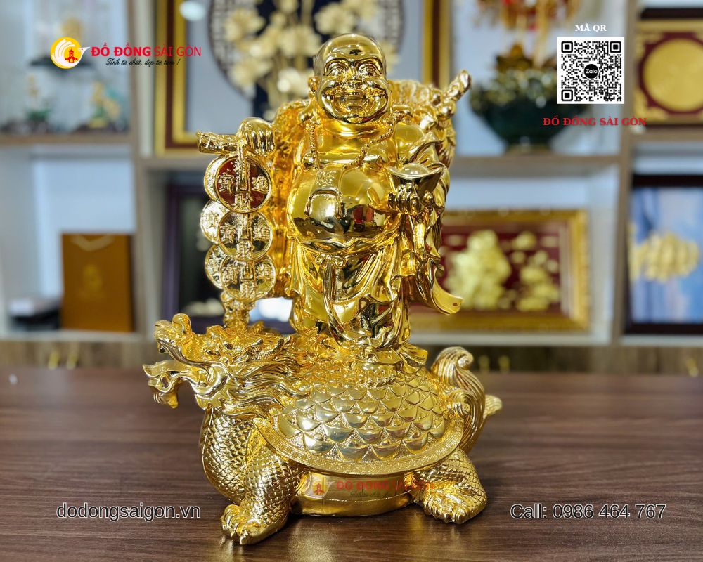 - Mẫu Tượng Phật Di Lặc Đứng Trên Rùa Bằng Đồng Mạ Vàng 24k
