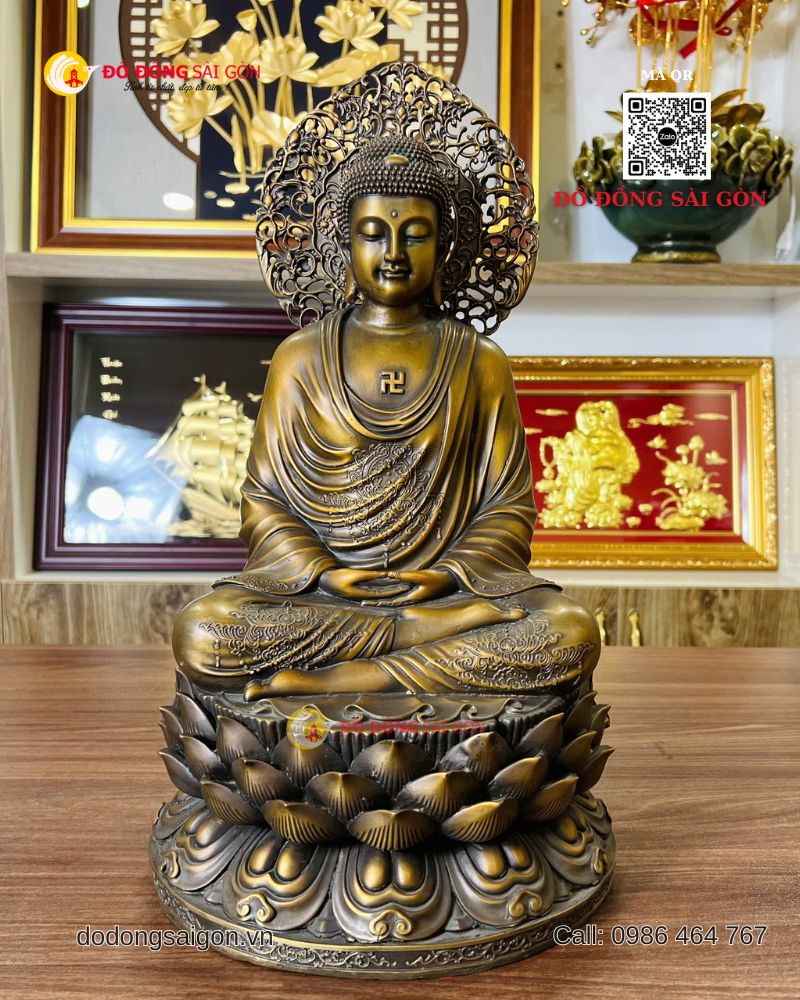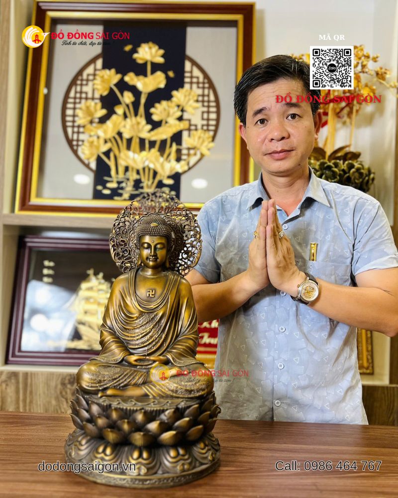 Tại Đồ Đồng Sài Gòn – Vua Quà Tặng Vàng, mẫu tượng Phật Thích Ca Mâu Ni cao 40cm được chế tác thủ công tinh xảo, đảm bảo chuẩn Phật tướng, phù hợp nhiều không gian thờ cúng hiện đại và truyền thống.