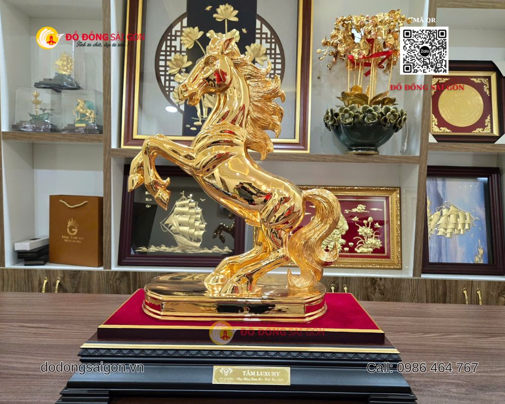 Tượng ngựa mạ vàng 24k vừa là vật phẩm trang trí, vừa là món quà có giá trị lâu dài, phù hợp tặng sếp, đối tác, khách hàng VIP hoặc người thân trong gia đình.