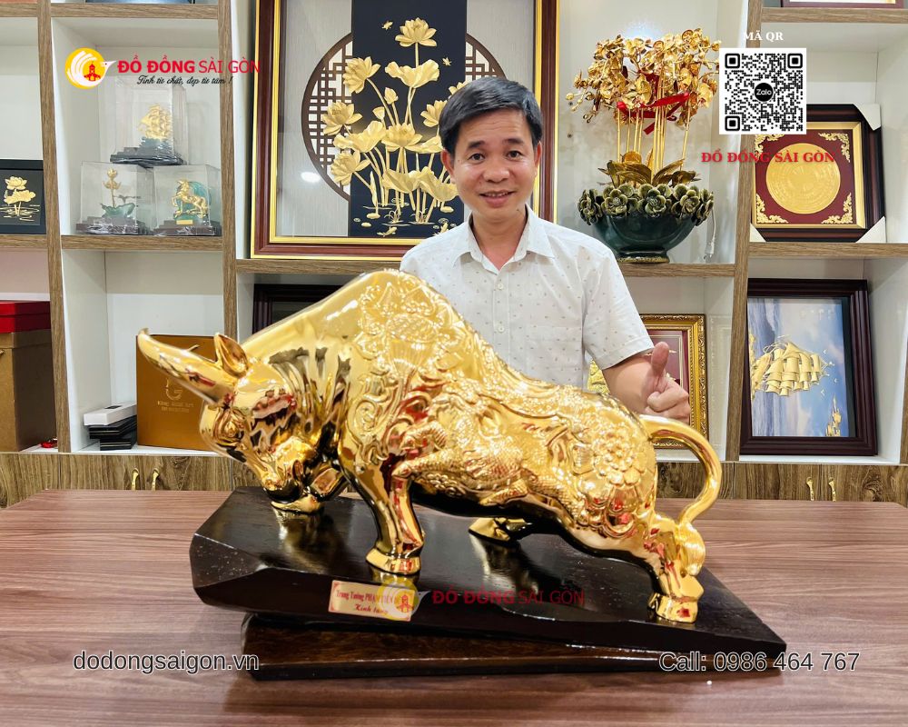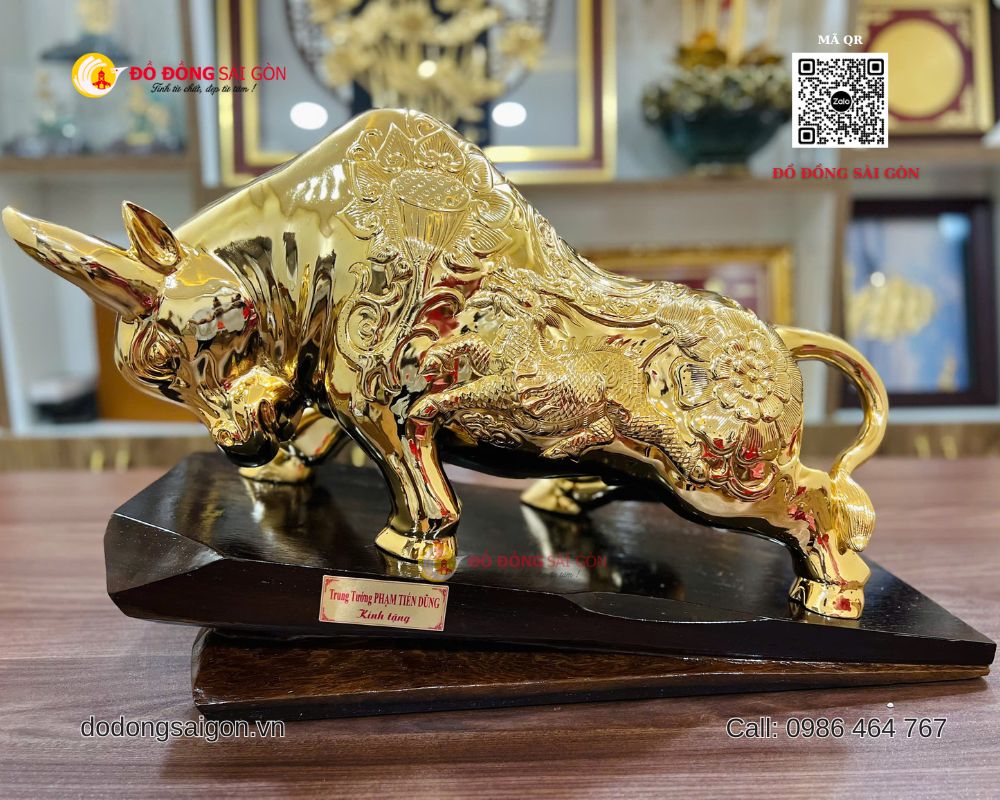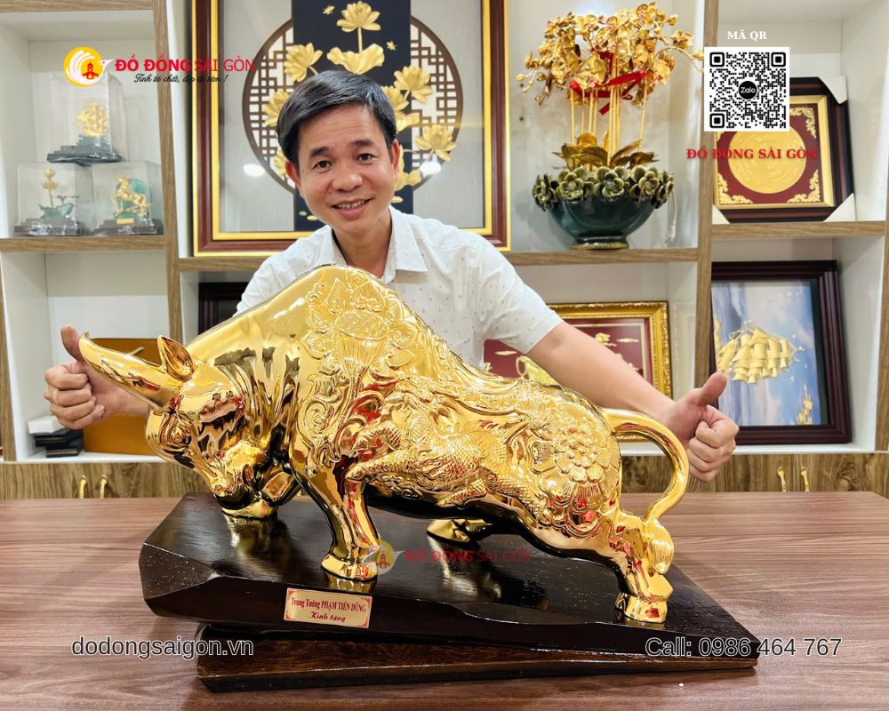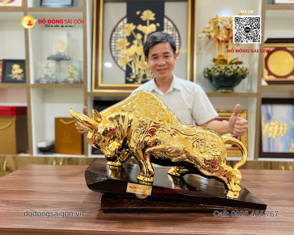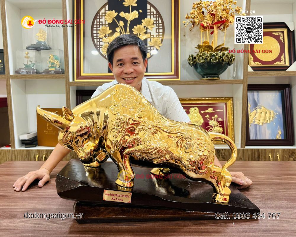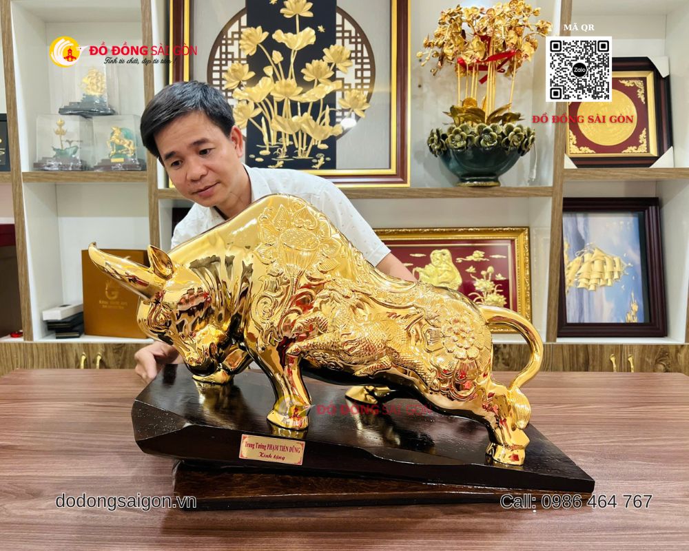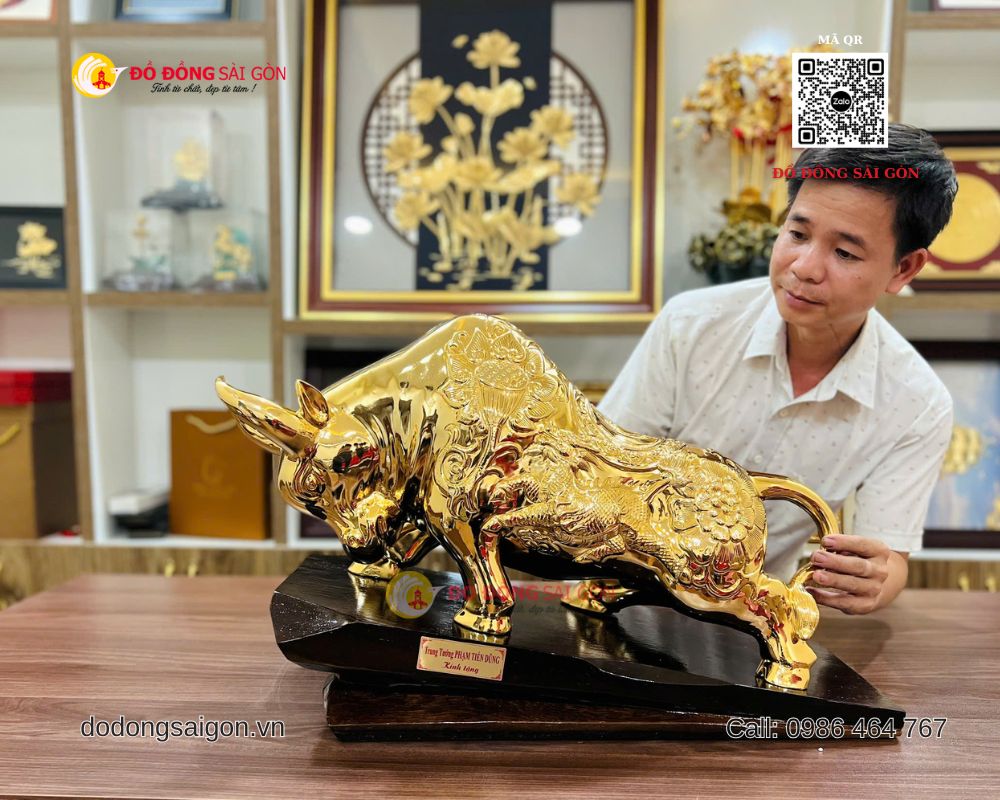 Tại Đồ Đồng Sài Gòn – Vua Quà Tặng Vàng, mẫu tượng bò tài chính cỡ lớn luôn nằm trong nhóm sản phẩm bán chạy nhờ thiết kế hoành tráng, chất liệu cao cấp và giá trị phong thủy mạnh mẽ.