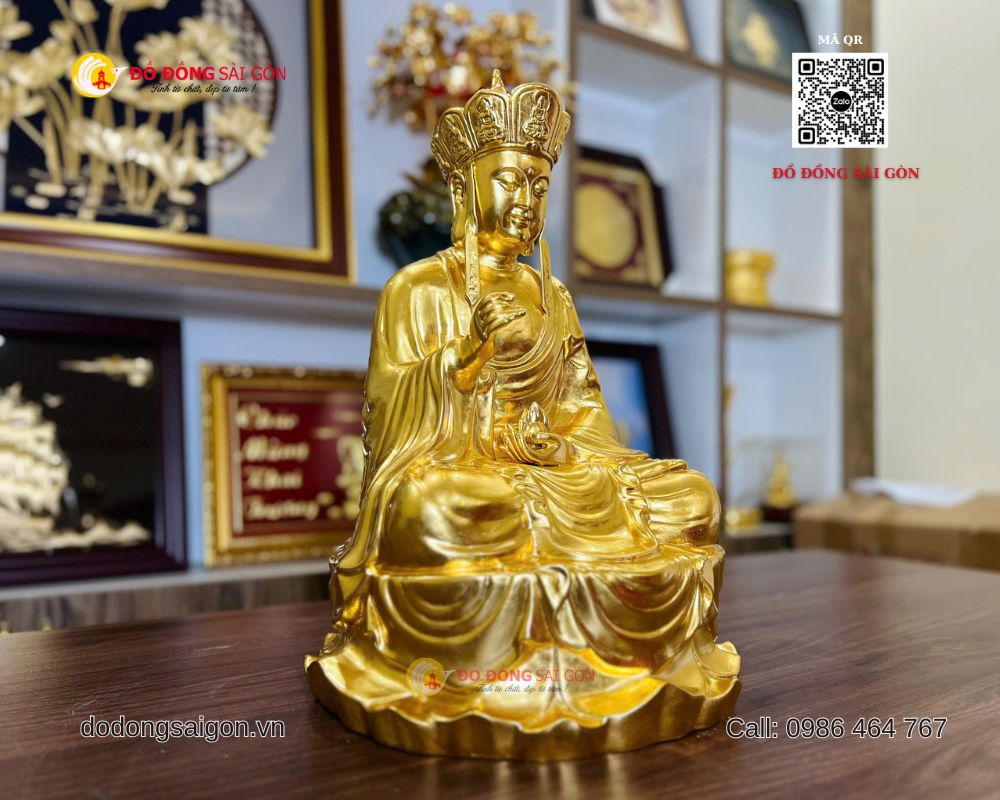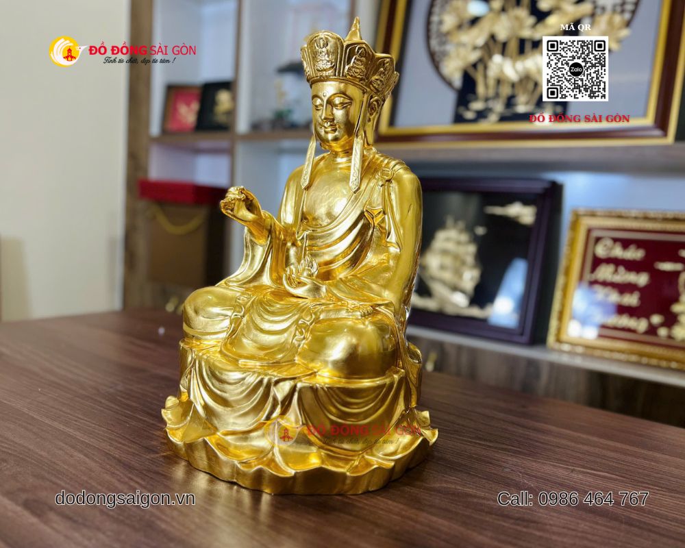 Tượng Địa Tạng Vương Bồ Tát bằng đồng dát vàng 24k cao 61cm, nặng 22kg là pháp tượng mang ý nghĩa từ bi – cứu độ – bình an – hiếu đạo. Đây không chỉ là vật phẩm thờ tự trang nghiêm mà còn là biểu trưng của phúc đức và tâm linh sâu sắc. Nếu bạn đang tìm một tượng Phật cao cấp, linh thiêng, bền vững theo thời gian, hãy lựa chọn Đồ Đồng Sài Gòn – Vua Quà Tặng Vàng.
