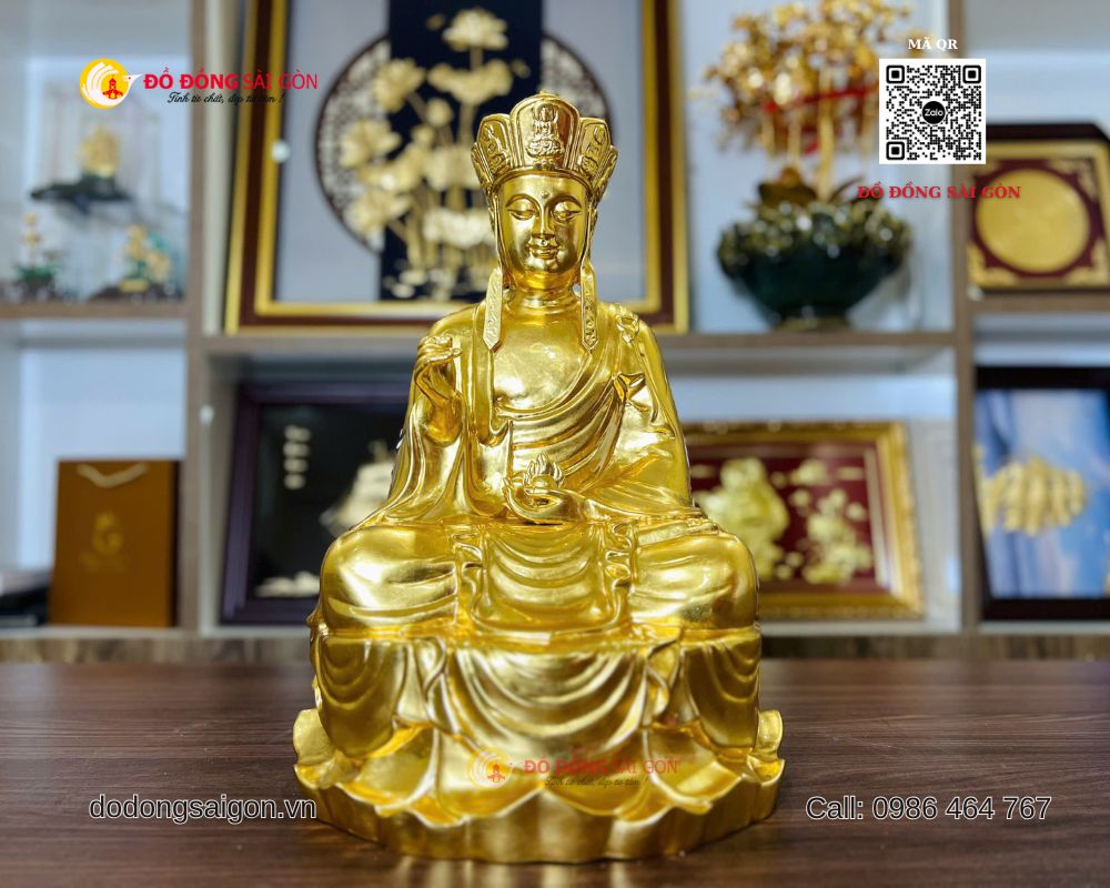 Tại Đồ Đồng Sài Gòn – Vua Quà Tặng Vàng, mẫu tượng được chế tác từ đồng nguyên khối dát vàng 24k, cao 61cm, trọng lượng 22kg, thích hợp thờ tại chùa chiền, tư gia, nhà thờ họ, phòng thờ Phật trang nghiêm.