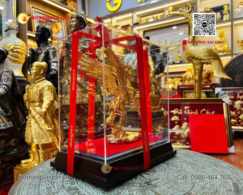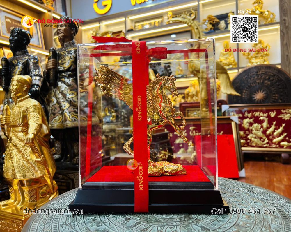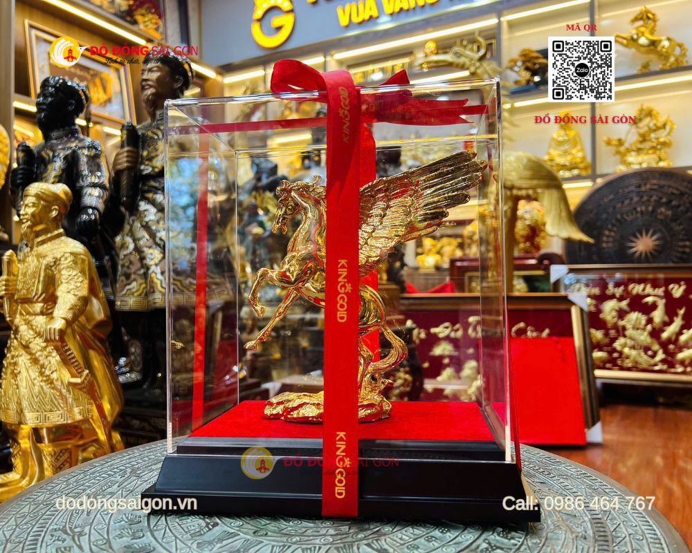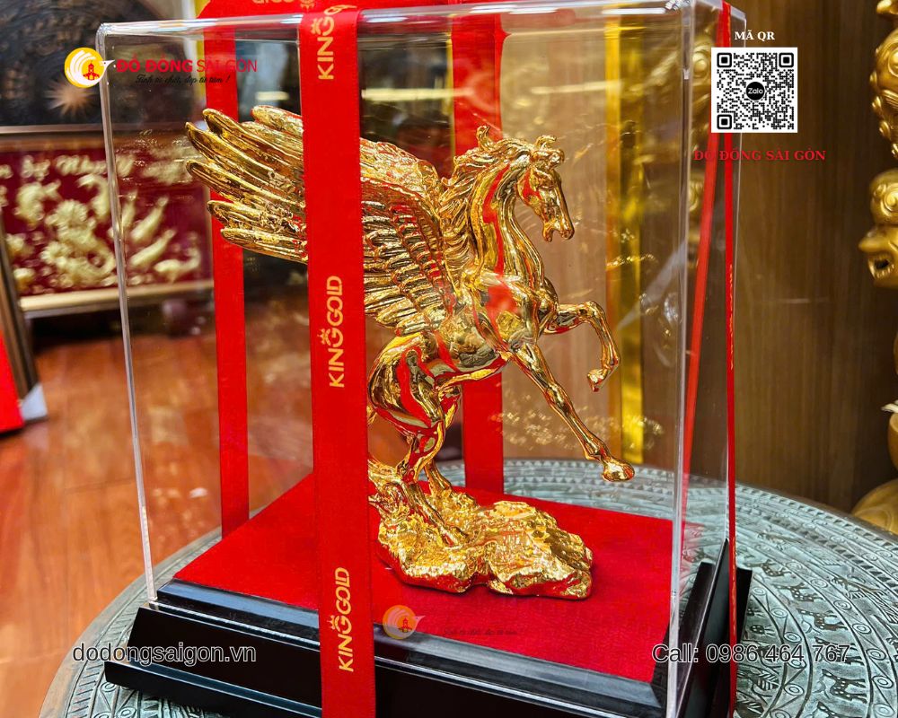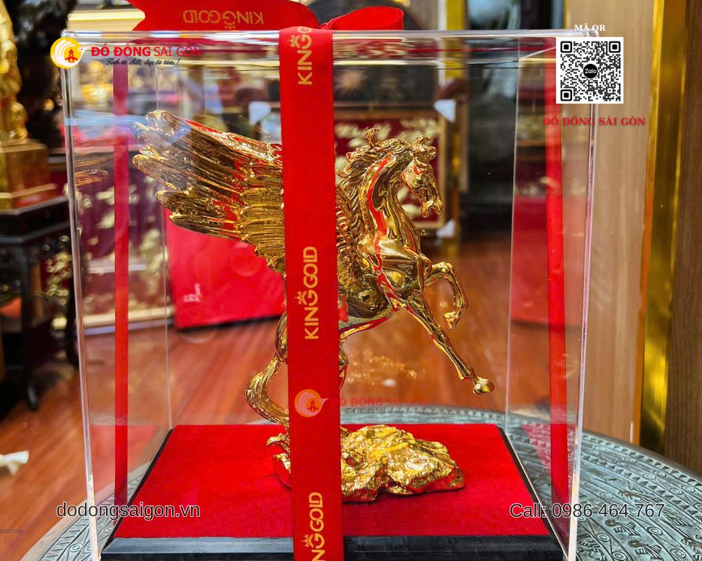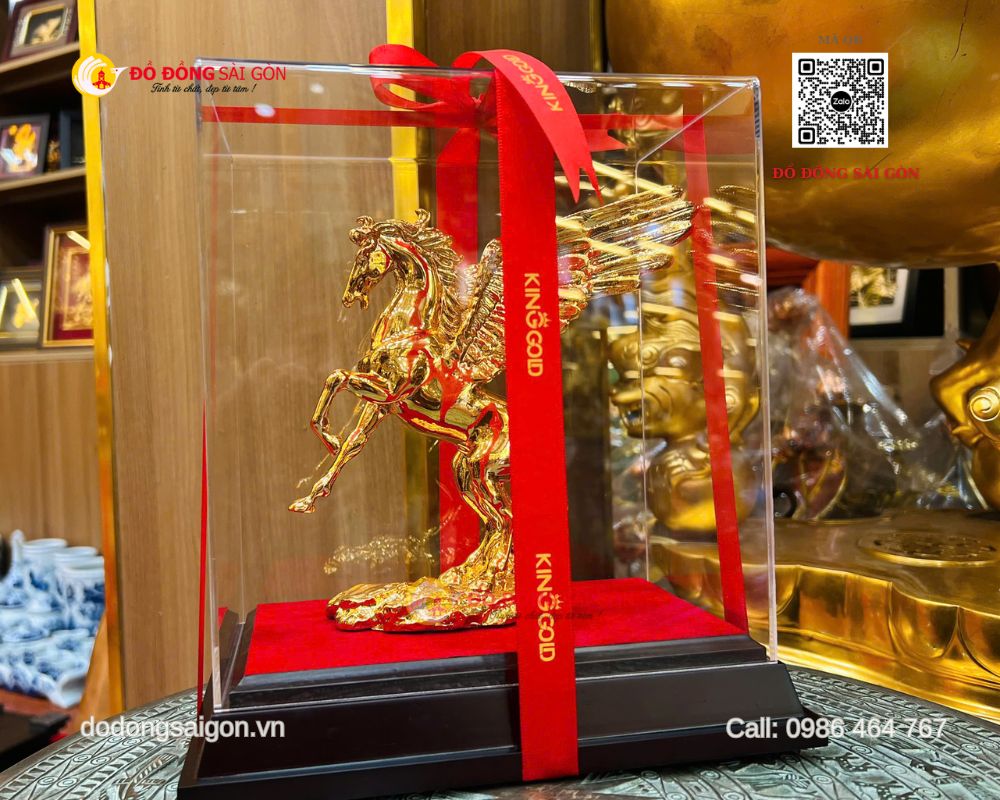Tại Đồ Đồng Sài Gòn, mẫu ngựa có cánh bằng đồng mạ vàng 24K cao 20cm được chế tác thủ công tỉ mỉ, là quà tặng để bàn làm việc vừa đẳng cấp vừa giàu giá trị tinh thần.