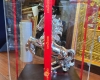 Bề mặt tượng được mạ bạc sáng bóng, phản chiếu ánh sáng rất tốt, tạo cảm giác sang trọng – hiện đại nhưng vẫn giữ nét phong thủy truyền thống. Toàn bộ tượng được đặt trên đế gỗ cao cấp, phía ngoài có hộp mica trong suốt, giúp bảo vệ sản phẩm và nâng tầm giá trị trưng bày.