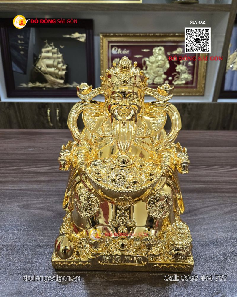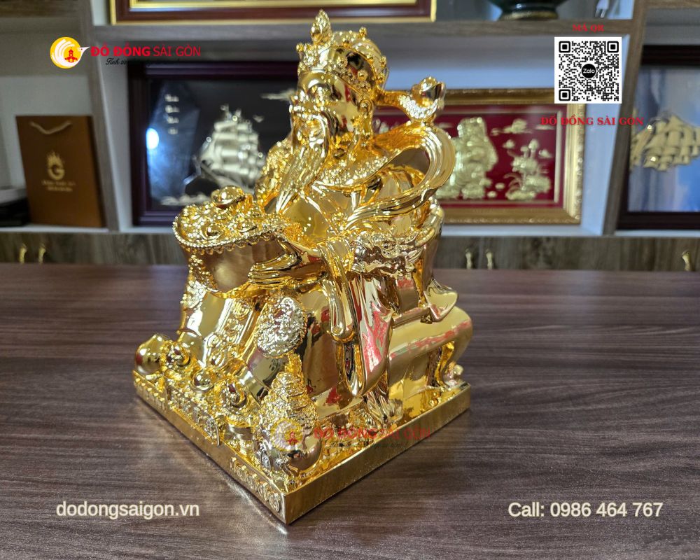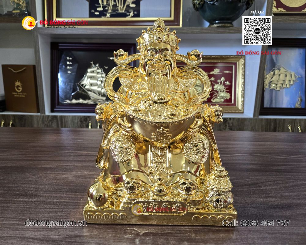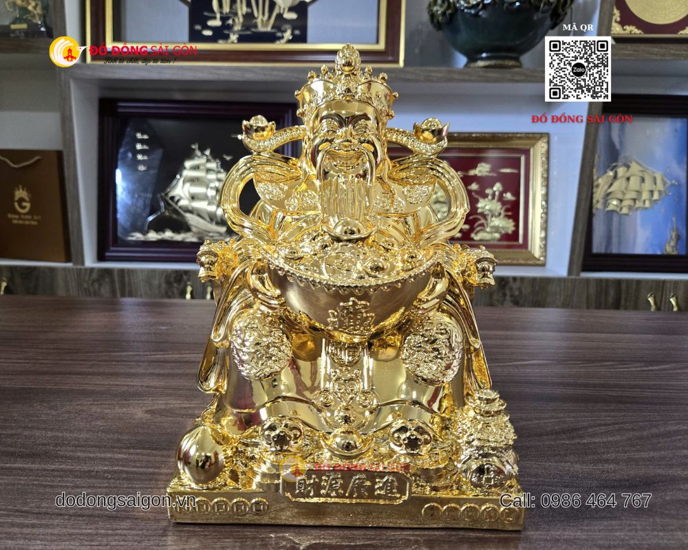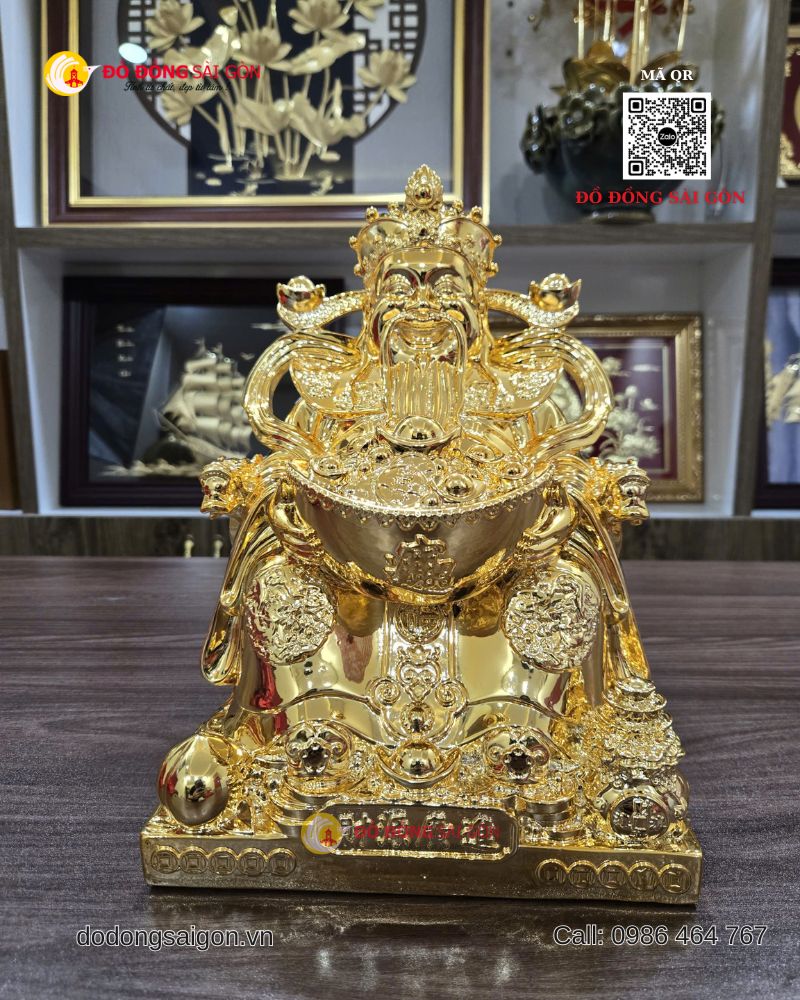 Tượng Ông Kim Tiền cao 25cm, ngang 18cm là một trong những mẫu tượng phong thủy được nhiều khách hàng lựa chọn tại Đồ Đồng Sài Gòn – Vua Quà Tặng Vàng. Với hình tượng phúc hậu, tay cầm tiền vàng, nụ cười hoan hỷ, tượng mang ý nghĩa chiêu tài – giữ lộc – gia tăng may mắn trong kinh doanh và cuộc sống.
