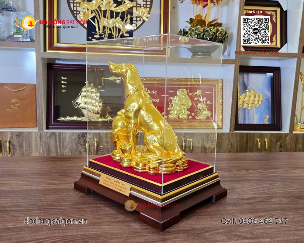 Tượng chó bằng đồng mạ vàng 24k – cao 41cm là một trong những mẫu linh vật phong thủy được ưa chuộng tại Đồ Đồng Sài Gòn – Vua Quà Tặng Vàng. Với hình ảnh chú chó mạnh mẽ, uy nghi nhưng cũng vô cùng gần gũi, sản phẩm mang ý nghĩa bảo vệ gia đạo, thu hút may mắn và mang đến bình an cho gia chủ. Nhờ chất liệu đồng mạ vàng 24k cao cấp, tượng không chỉ bền đẹp mà còn thể hiện sự sang trọng, phù hợp làm quà tặng cho sếp, đối tác, khách hàng hoặc trưng bày tại nhà, văn phòng.
