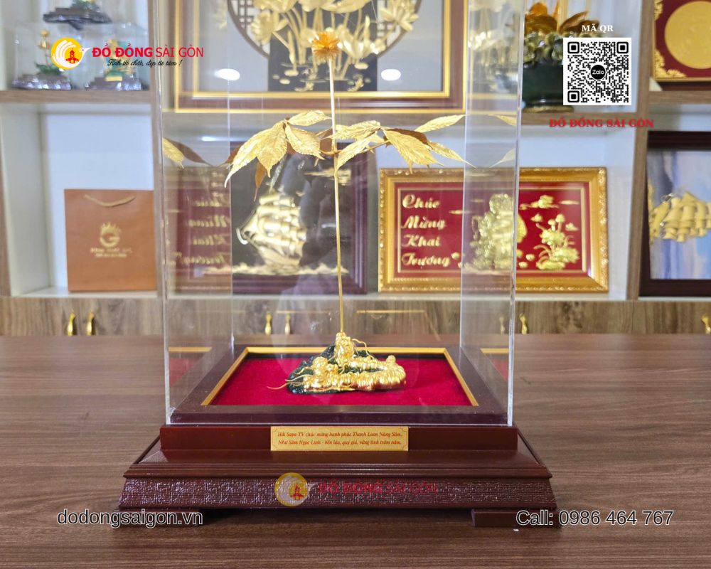 Cây Sâm Ngọc Linh bằng vàng 24k – cao 50cm là một trong những mẫu quà tặng phong thủy sang trọng và đẳng cấp nhất tại Đồ Đồng Sài Gòn – Vua Quà Tặng Vàng. Lấy cảm hứng từ “quốc bảo Việt Nam”, biểu tượng của sức khỏe, trường thọ và thịnh vượng, mẫu sản phẩm này không chỉ có giá trị nghệ thuật mà còn chứa đựng những thông điệp tốt đẹp, phù hợp làm quà biếu tặng cấp cao, tặng đối tác, tân gia, mừng thọ, khai trương hoặc làm vật phẩm trưng bày phong thủy.